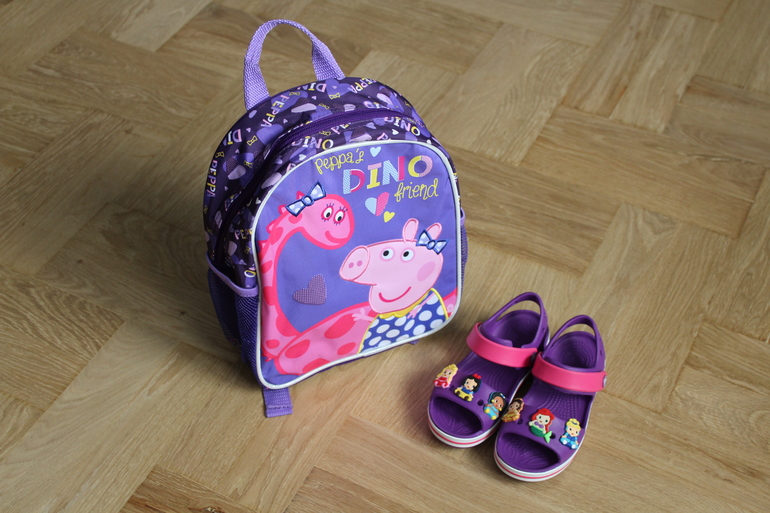 А ещё у неё есть очень любимый рюкзак с динозавром. Конечно, в нём динозавр не самый главный:).