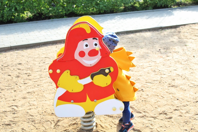 Вообще я капюшоны детям редко надеваю на голову, но в данном случае иногда это всё же делаю.