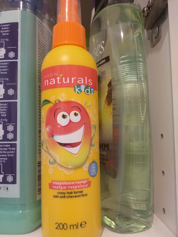 Косметика и гигиена.Ванночки и горшки, шампуни, средства для стирки и мытья, личная гигиенОчень хочется поделиться отзывом на спрей для расчёсывания волос Avon. У дочки длинные и достаточно густые волосы, и этот спрей для нас - просто спасение, особенно после мытья головы. Причем он "работает" не только сразу после нанесения, но и несколько дней после. Мы моем голову раз в неделю и спреем пользуемся с такой же периодичностью.