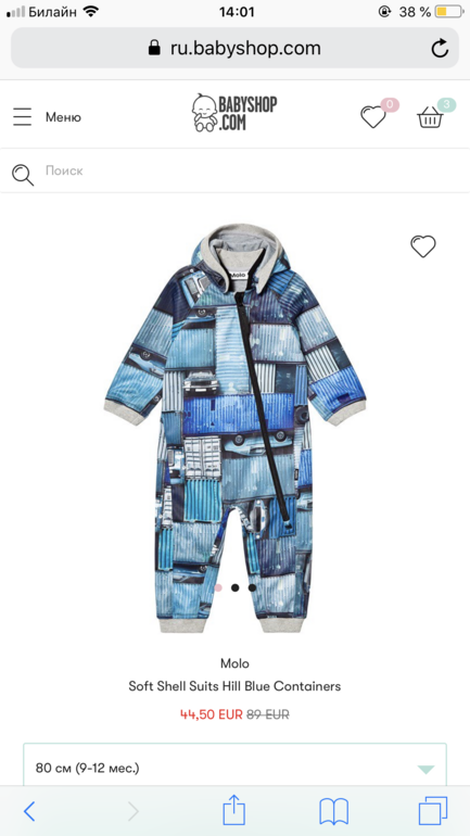 Я до сегодняшнего дня была уверена, что сын будет носить этот комбез осенью. Поэтому даже не смотрела, на oii неплохо выходит Моло, но там только 80(((
