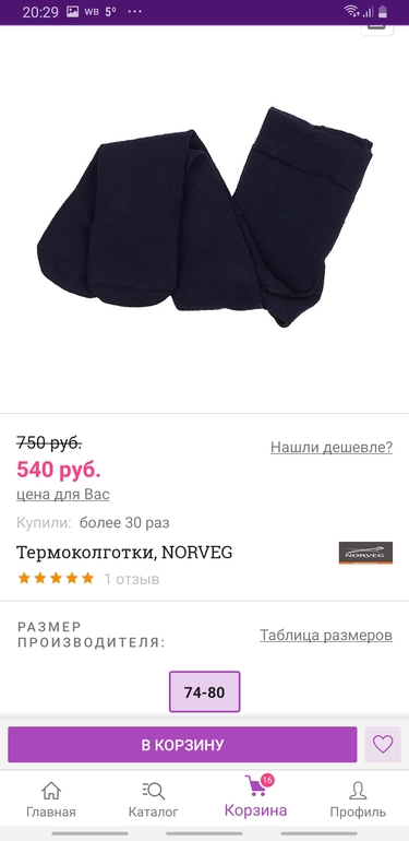 Термоколготки Norveg74-80 и kuoma20,22 на WB по бомбическим ценам.