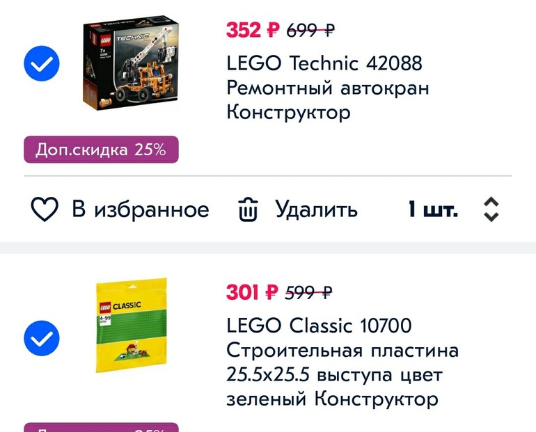 Распродажи. Скидки. Акции.Девочки ранее писали, что не проходит доп.скидка 25% в оз.не на лего при покупке 2-и более наборов. Снова действует.