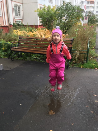 На дожди, вернее, для купания в лужах было так (надевала и на куртку, и на плащик):