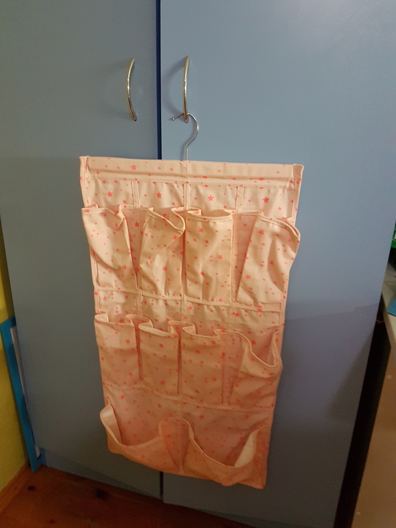 Именно такие органайзера обычно висят не в детском отделе, а в организации шкафа, туда очки кладут, ремни, шарфы и др мелочевку. Для ребенка кармашки узковаты