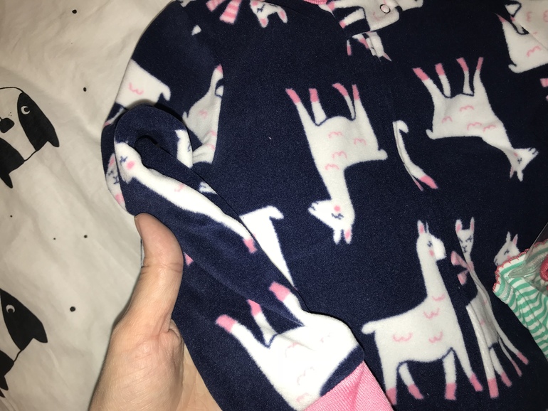 Да, у меня тоже на этих слипах такие бирки. А до этого весь Картерс, какой из Америки заказывала, был с такими напечатанными: И если флис по качеству ещё более менее, то вот у этого хб слипа качество очень среднее, много ниток торчащих и ткань тонкая: До этого из хб только бодики американские брала, там ткань другая, плотнее. Может, конечно, у них все слипы такие.