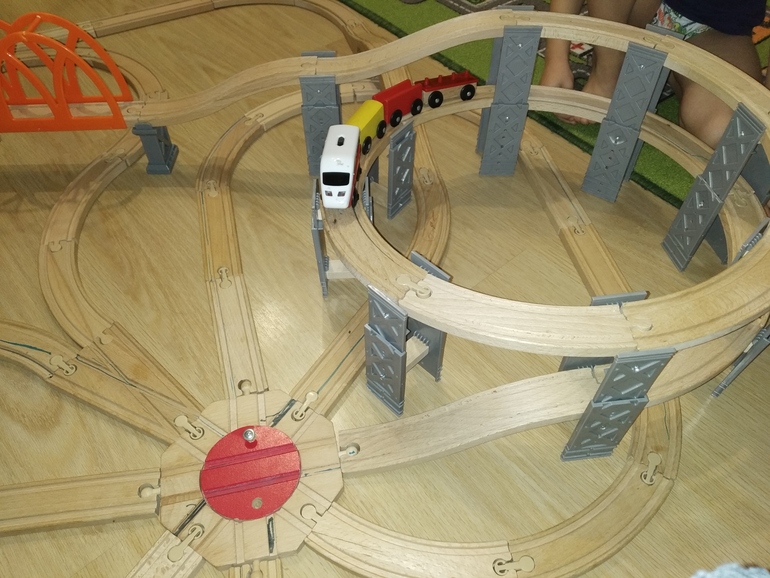 Мы тоже были в Икее недавно, сын схватил этот паровоз, но я остановила) во-первых, цена: за 600 руб 1 паровоз - не айс) Во-вторых, тоже засомневалась, что под нашим мостом он пройдёт. В ширину ещё можно расширить (длинная деталь + вниз кубики под места соединения), а вот высота.