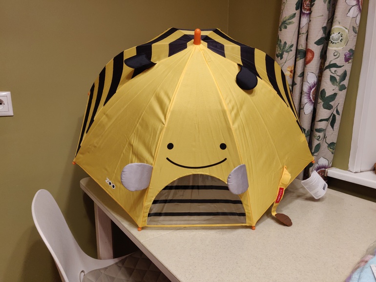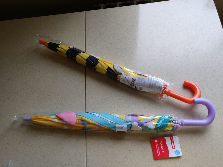 Два зонтика пчела и единорог. Очаровательные. Себе наверное оставлю единорога, а пчелу подарю племяшке. Стоимость 580 р.