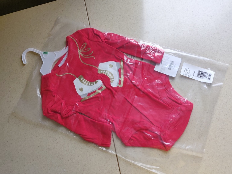 Бодик с коньками - 245 р. Кстати, обратите внимание, как классно все пришло упаковано! Каждая вещь в отдельном ПЛОТНОМ пакете-чехле, вешалки в отличие от той же мазекеи, никто с одежды не снимает. Как-то прям приятно...