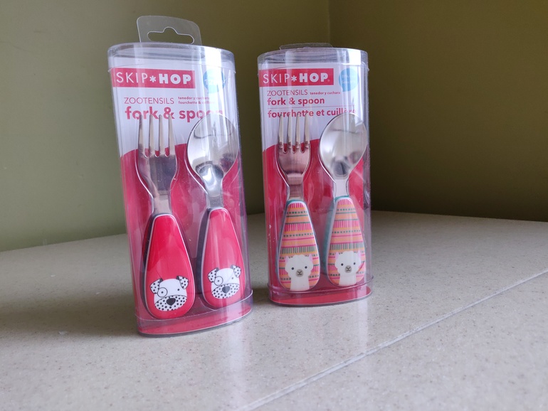 Столовыми приборами тоже уже пользуемся. Пока отрыли только "ламу". Долматинов может подарим кому-нибудь. Качество очень хорошее. Нет никаких следов клея, сколов. И вилочку, и ложечку приятно держать в руках. Цена комплекта была 345 р.