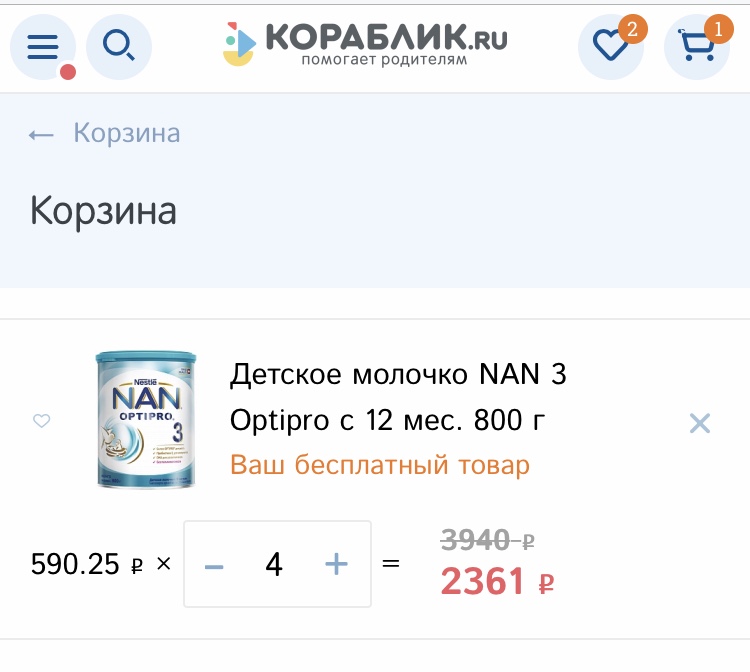 У меня вышло выгодно заказать Нан 3 оптипро 800гр по 590р + кешбек 5% за оплату онлайн .