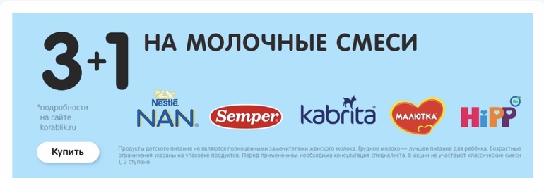 Акция 3+1 на молочные смеси в Кораблике