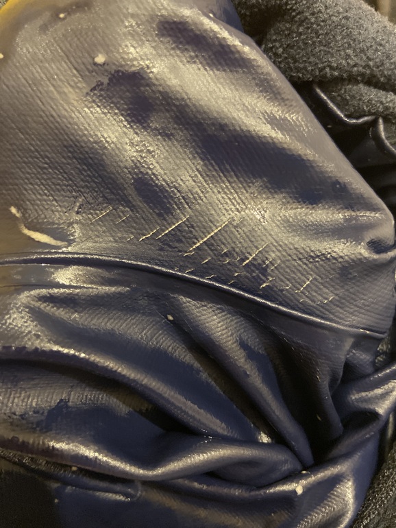 Я вот подумала, мне кажется можно внутри попробовать приклеить заплатки из ремкомплекта для велосипедных шин. Там тоже такая тоненькая эластичная резина. И снаружи хорошенько пройтись пропиткой.