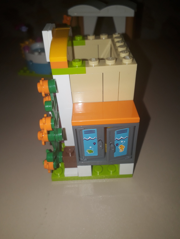 С передней части домика можно встретить валик и баночку с фиолетовой краской