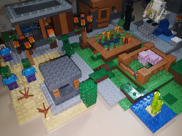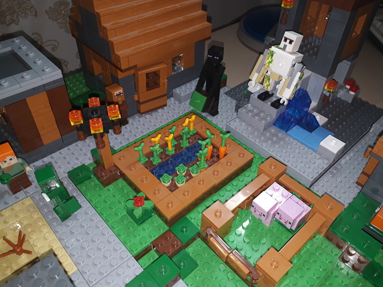 Возле огорода зеленая фигурка Крипера(тоже сказала нужно указать)
