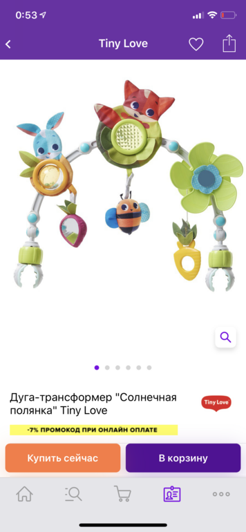 Интернет-магазины России и стран СНГХорошая цена на Wildberries на дугу Тини лав 1960 руб с 20% скидкой + бонусы и 7% промокод при оплате онлайн, вышла всего 1300 рублей.
