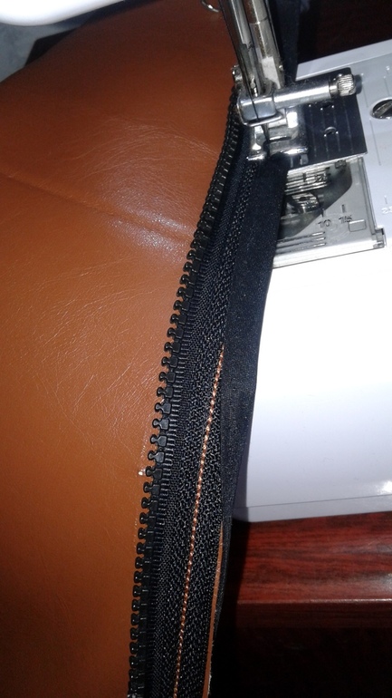 4. Вставила во внутрь пластик,заколола иглами и пришила молнию.