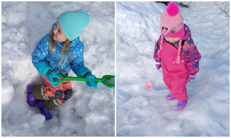 Слитник Лесси 80гр, резиновые штаны поверх, краги и сапоги с шерстяной стелькой). С осени куртка на синтепоне и полукомбез 60гр (покупала на сменку за копейки в Детском мире).