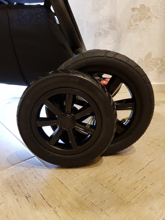 Коляска становится выше, но за счёт регулируемой ручки, это не проблема, а скорее плюс, т.к. корзина перестаёт чиркать о бордюры.😊👍 Болезнь всех снапов со стандартными колёсами🤦♀️