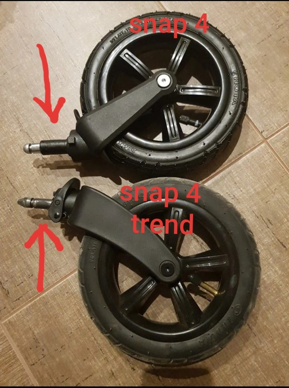 У колёс на снап 4 втулка более толстая и короткая и блокираторы колёс по бокам, а у колес на снап 4 тренд втулка более длинная и заострённая и блокиратор располагается впереди. Из-за этого они не могут быть взаимозаменяемыми. 🤷♀️
