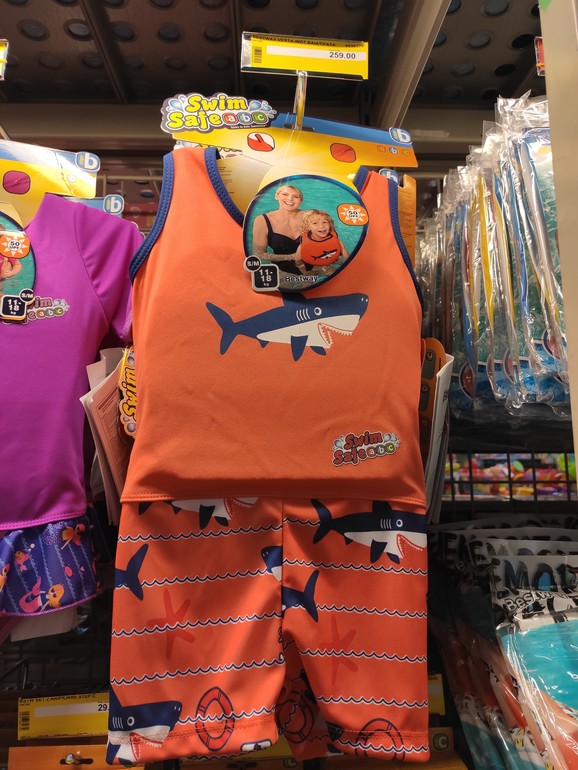 ещё такое рассмотрите, у меня младшая плавать научилась в таком, постепенно вытаскивала пенопласт и она поплыла без всего в 1,11, без занятий по грудничковому плаванию и тренеров, просто со мной в бассейне плавала. И в 2 года на море было удобно в таком,она то туда,то сюда и на берегу не мешают эти штуки и в море подстраховка. Но далеко не каждому годовасу подойдут, а трехлетке и пятилетке норм. Они уже и в воде активные обычно.
