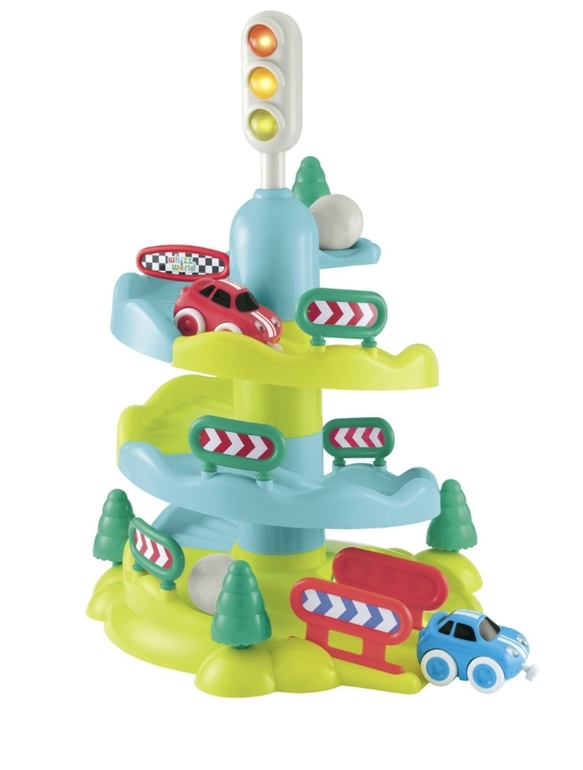 У нас первый вариант есть, только цвет другой. Сыну 2,5 и не интересно уже. Играет дочка 8 мес. Но игрушка хорошая. Взяла такую на подарок. Оставьте дорожку музыкальную. Думаю должно зайти)