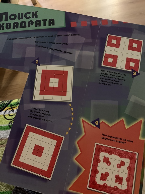 Первая вещь которую ищу : книга с пятнышками . На каждой странице разные задания как их составить . Там не цифры в пятнашках а разная геометрия. Если получится ниже фото приложу .