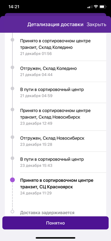 На мой вопрос "почему заказ уехал обратно", они мне написали "Вы можете увидеть трекинг в разделе личного кабинета" покупки доставки", вообщем, шаблонный ответ. Рука-лицо.