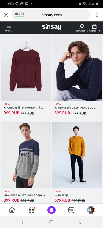 Распродажи. Скидки. Акции.Несколько лет назад заказывала с сайта Sinsay себе спортивную толстовку, осталась довольна... Насколько помню там были представлены товары только для девушек. А сейчас посмотрела, появилось и детское и мужское. Цены приятные, футболки от 79р., курточки зимние от 450 р...Сейчас у них распродажа!