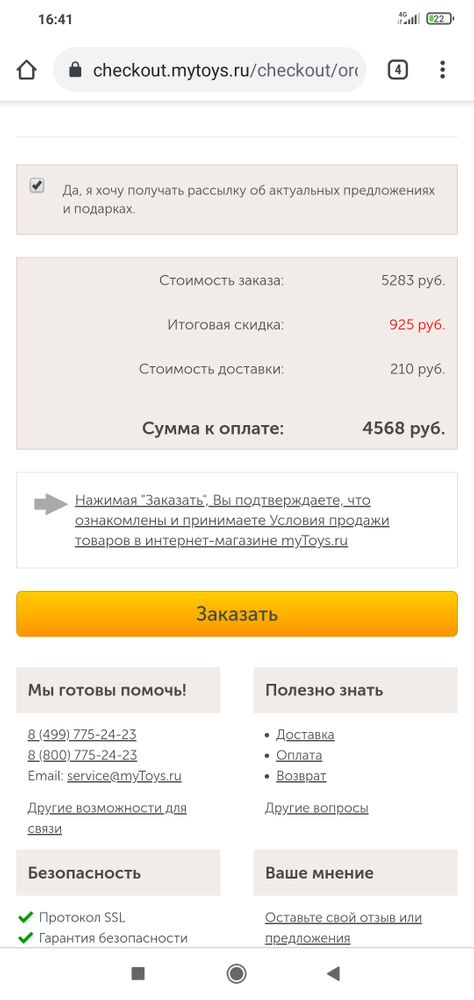 Доставка в Майтойс