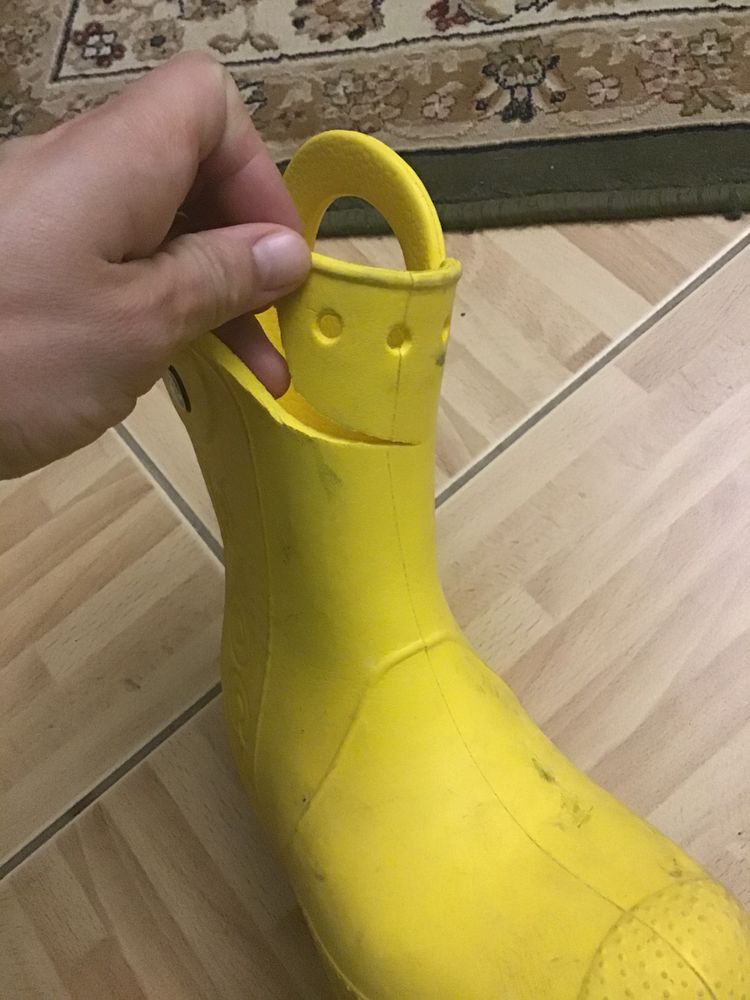 Привет! Вот так вот мой сынок надевал сегодня кроксы.