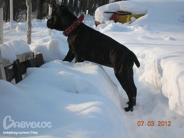На улице, за пределами двора, она попрежнему трус еще тот и если вдруг где лай услышит, сразу жмется ко мне или просится на руки, вот только поднимать ее уже как-то не в кайф. В принципе на поводке ходит нормально, отпускаю с поводка ее только в парке. Самое интересное что прохожие уже пугаются моей девочки, даже мужики предпочитаю подальше нас обходить, и все почему-то путают Мафи со стаффордом.