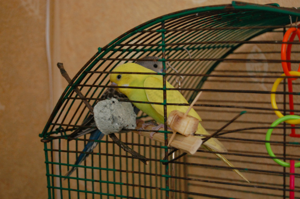 Надюшка), и попугая быстро купили. Первые 3 дня сидели они в соседних клетках, сразу друг другом заинтересовалиь, все время торчали на соприкасающихся стенках. Сегодня решила их объединить. Знаю, что рано, но невтерпеж стало...Если что - рассажу обратно.