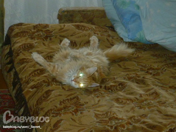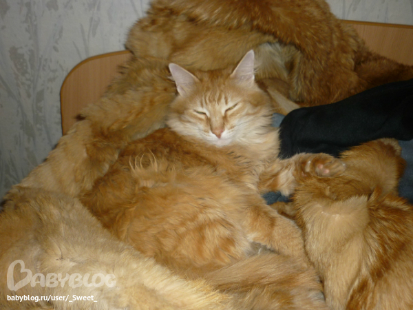 Сам он был большой, пушистый, рыжий и невероятно ласковый, только на руках не сидел. Его можно было полчаса гладить и чесать за ушком, пока он лежал на полу, но стоило поробовать взять его на руки - как можно было получить когтистой лапой.
