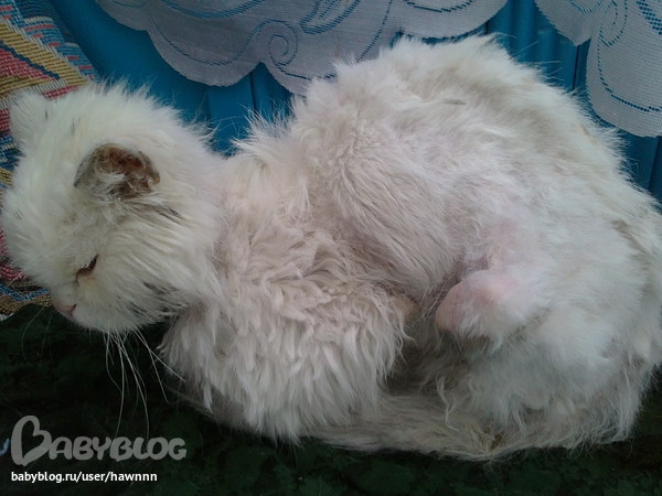 Мы тоже год назад подобрали выкинутую кошку, белую, персидскую ))).