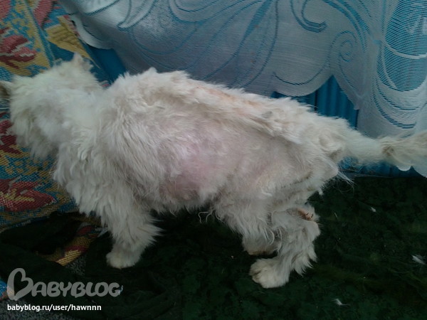 А наша болела, когда подобрали. Сначала вылечили (таблетки, уколы). Потом подстригли (в ветлеч., далась без наркоза), проглистогонили, а после уже и прививку сделали.
