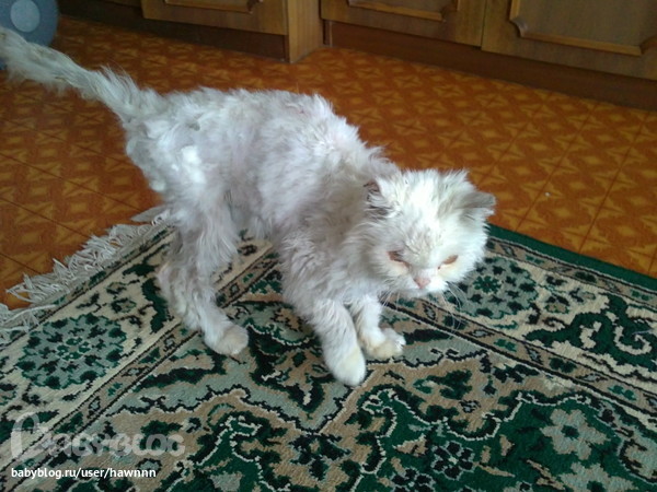 Помощь животным!Ночевала у мамы . Пошла на улицу звать маменого котика и нашла персидского кота . Кто то выкинул Мама сказала что он уже месяц по улици ходит и не чего есть не хочет . Худой просто ужас ,шерсть закашлачена весь в болячках . Мне стало его жалко и я забрала его себе . Он даже кастрирован . Помыла , постригла его . Вот наш Маркиз ))