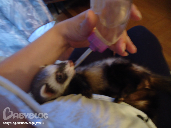 Так мы пьем из соски. Сами очень редко. Изображает и себя ляльку. При чм, ей все равно кто ее поит. Главное - сам процесс. Она от удовольствия инода даже вонять начинает своими анальными железами.Баааалдеет)))))))