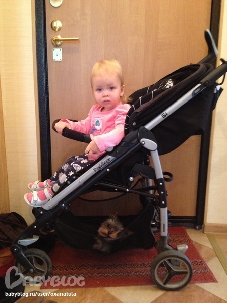 Ходит с трудом, а забраться в коляску ей даже помагать не надо))))