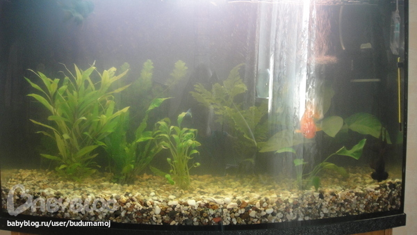 Почитала комменты-согласна с девушкой. Вот только фильтр поднимите повыше, у меня такой же. Желательно чтоб был 2 см ниже уровня воды (только следите,как вода испаряется,чтоб не вылез). Так он в основном воду гонит, а если повыше,то воздух будет хорошо тянуть. ))) А муть из-за грохнутого баланса (из-за лечения). Фильтр не мойте до тех пор пока затягивать воду не перестанет. А так все восстановится. Растения натуральные?