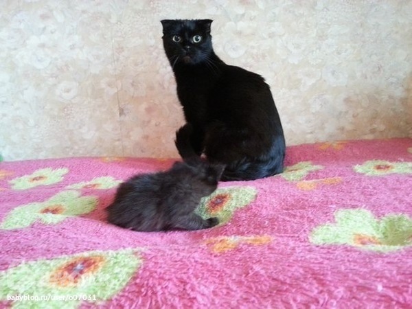 Мама-черная вислоухая шотландка, папа-прямоухий британец.Вот такую кроху нам должны привезти. Меня интересует вопрос про ушки , окрас-как называется и какая она примерно будет?) Такой гадкий утеночек на первый взгляд, но почему-то мила по душе стала, когда увидела ее.