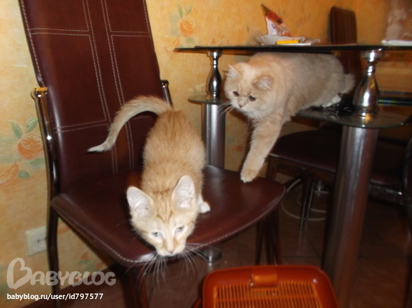 Сын сегодня их помирил с моей кошечкой) с утра носились по всей квартире, Фанька(киса моя) играла с Фартом(новый кот))) как с мышкой) но тот отбивался как мог) вообще ест как взрослый котяра....а пукает(ссори)))как мужик)) да еще и со звуком) сегодня уже освоился посностью!