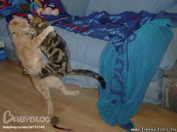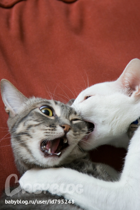 Я никак не могу поместить сюда фото своих дерущихся. У нас черная кошка с белым котом обычно друг к другу цепляются, а серый наблюдает. У меня в дневнике в посте "Не бойтесь страшненьких" все они есть.