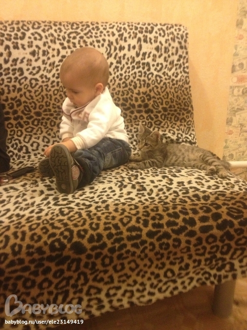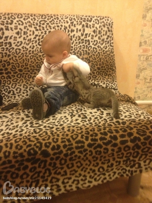 Забавные и милыеВасю нашел муж ББ-шки Оли (не могу вставить ссылку :((. Котят выкинули в пакете на мороз и он один выжил. А мы искали себе кошку с приюта, но сделать это не удалось к сожалению. А тут Оля предложила "усыновить" этого усатого полосатого. Взяли мы Васю к себе на ПМЖО. Сходили в больничку где, как оккзалось, у Васи обнаружили лишай и настоятельно рекомендовали усыпить (тоже пост писала сюда). Благодаря вашим советам - Васю мы почти вылечили. Потом я уезжала к маме на 2 недели и Васю отвезла в магазин к мужу, чтоб он один дома не скучал и не голодал (муж сутками на работе). А теперь Васю не хотят отдавать! Он там как царь - всех построил :)) Думали, что будет от мышей охранять, а он вообще вход в кабинет охраняет :)) По обоям добирается до самого потолка и там висит в поисках жертвы входящей. И сваливается на голову посетителям. Или еще видела сама лично - выглядывает из-за угла и плюется :)) А еще подпрыгивает, в рукав цепляется бульдожьей хваткой и так и "ездит". Так смешно! Очень подружился с нашим сыночком маленьким - когда приходим, всегда рядом с ним находится. Вот так. А дома опять скучно :(