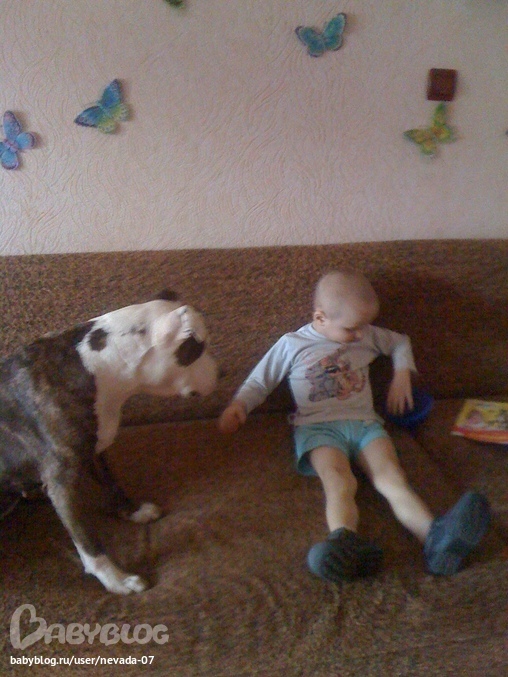 маленький ребеной и бойцовская псина )))