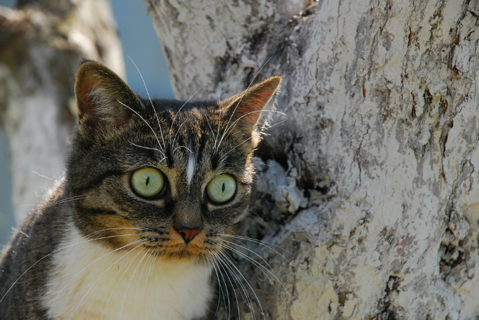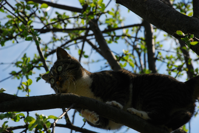 это наверное самый стандартный дворовый окрас, но при этом видно что в кошке живёт пятнисто-полосатый дикий зверь, есть в этом что-то приятно естественное...