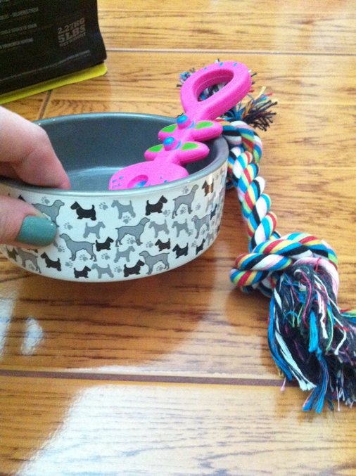 У Ральфа такая мисочка была для воды)))) наш, кстати, тоже любитель канатов и всего, за что поперетягивать можно)