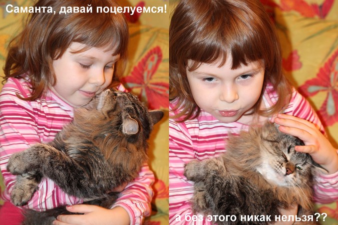 Если на первой дочка с неописуемым восторгом держит животину, то на второй уже на личике написано "как же ты мне надоел":))))