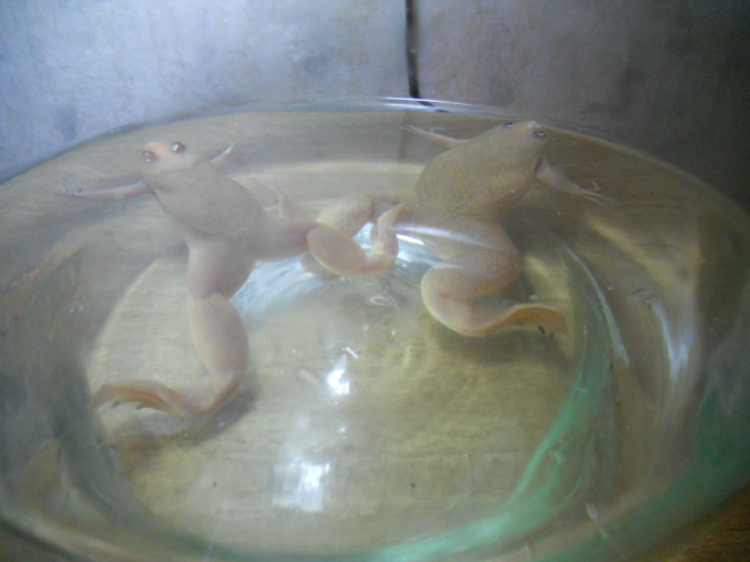 Уезжает моя Кума и отдала мне 2х лягух.А мне же 2х детей,аквариума на 200л,попугая и собаки МАЛО!Я и взяла.Ещё в придачу 3х сомов. 2 таракатума и 1 красовца
