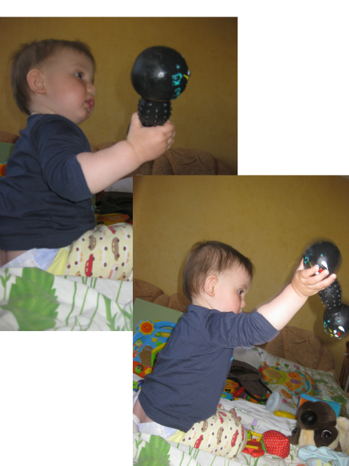 Здесь Сережке месяцев 7 - кидает Харду игрушку