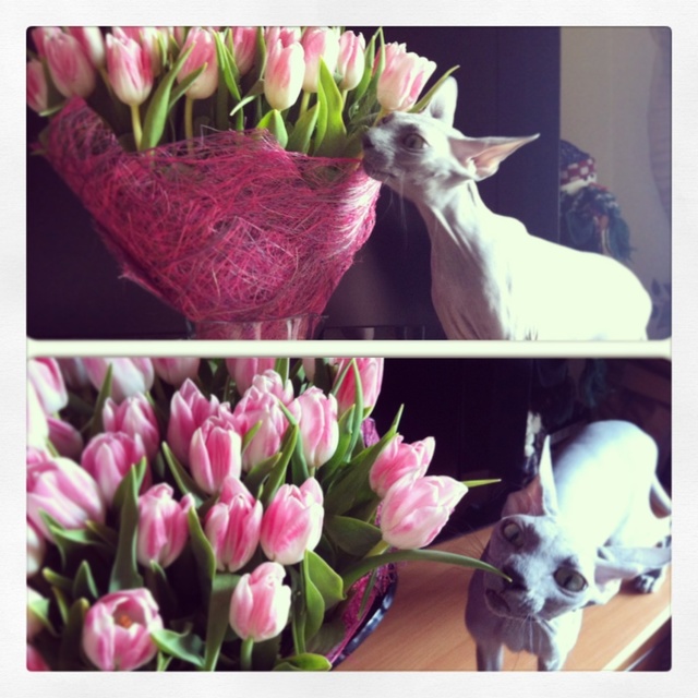 Киса у Вас красавица!!!!))) Мои обормоты тоже любят грызть цветы в вазах! Прям как саранча..))) И полюбоваться не успеешь!)))))